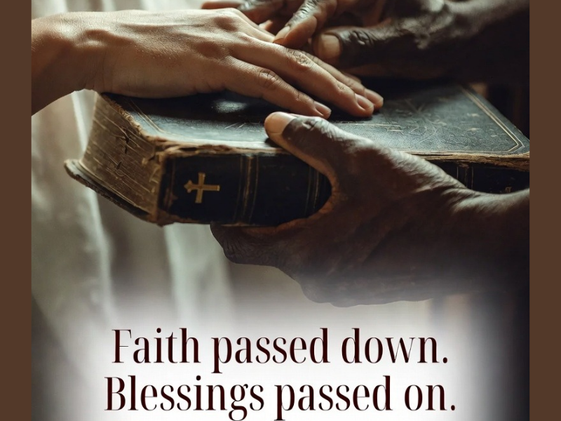 - A grandmother’s hands holding a worn Bible, sunlight streaming through window, text: “Legacy of Faith. Wednesday Wisdom.”